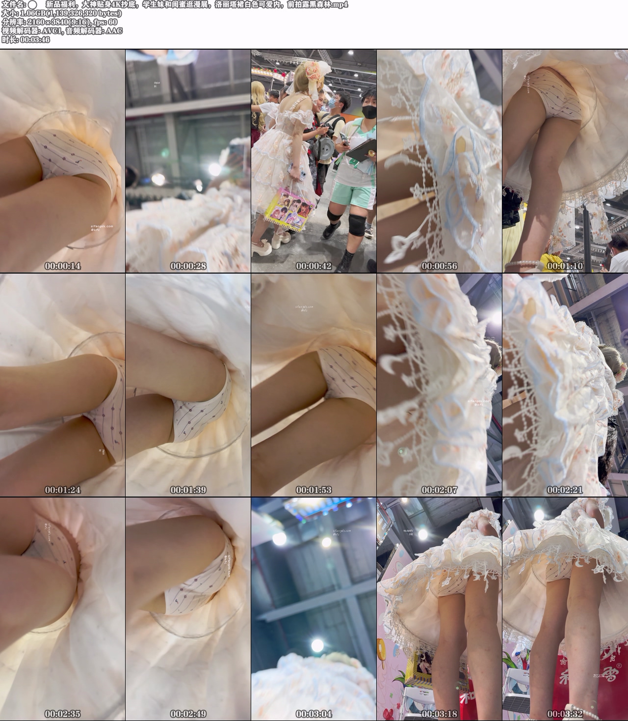 【影片名称】:新品福利,大神贴身4K抄底,学生妹和闺蜜逛漫展,洛丽塔裙白色可爱内,前拍露黑森林