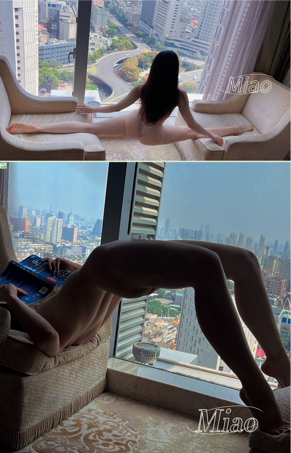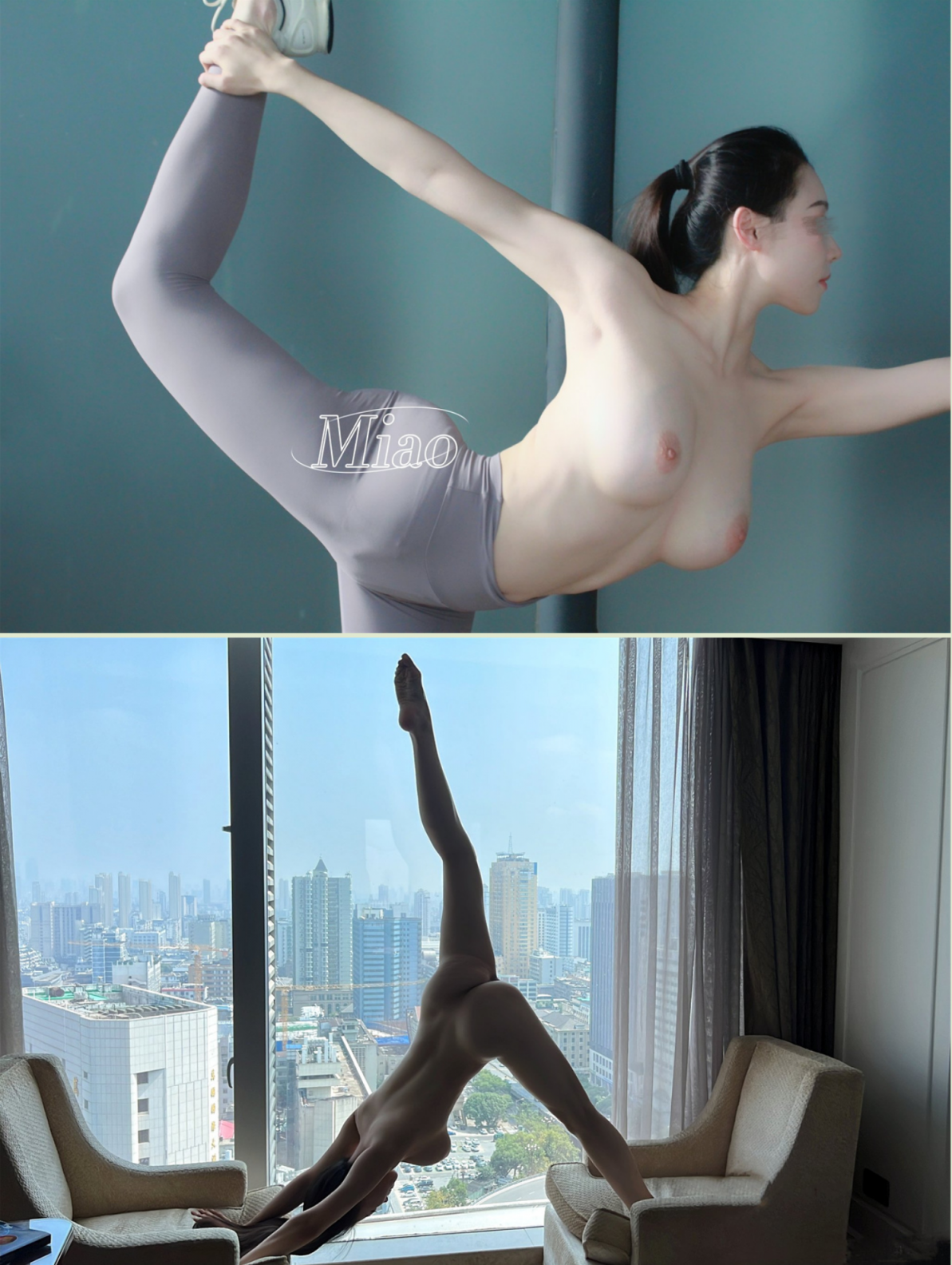【11】:最新,推特人气女神,【教瑜伽的喵老师】在地标大裤衩前,五星级酒店窗前,高难度一字马,唯美且诱惑!
