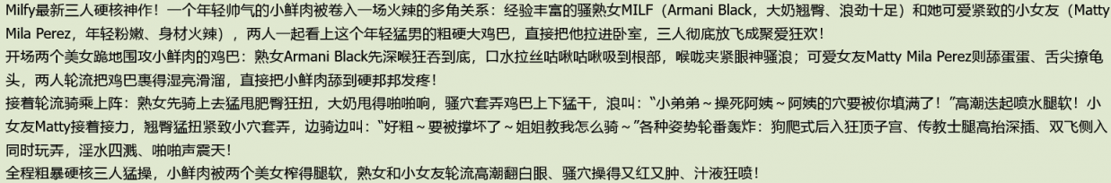 【文件名称】:拉美巨乳美熟女Armani Black联袂Matty Mila Perez骚熟女 可爱女友轮流骑乘年轻猛男大屌!三人聚爱狂干
